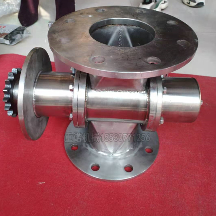 YCD-HX型星型卸料器和星形卸料器一樣,其常用在氣力輸出系統(tǒng)中,對于壓力輸出系統(tǒng)或負壓輸出系統(tǒng),星型卸料器以均勻,連續(xù)地向輸料管供料,以保證氣力輸出管內(nèi)的氣,固體比較穩(wěn)定,從而使氣力輸送能正常工作,同時,又能將卸料器的上,下部氣壓隔斷起到鎖氣作用。因此,星型卸料器是氣力輸送系統(tǒng)中常用的重要部件。YCD-HX型星型卸料器常是由帶有數(shù)片葉片的轉(zhuǎn)子葉輪,殼體,密封件及減速器,電動機等組成,YCD-HX星型卸料器它所輸送物料的溫度可達280°,兩端軸承與葉輪有 隔離,能防止 粉料與軸承接觸。程度可達500°C,采用鏈輪連接,減速機和卸料器殼體有 的距離。它的損封閉型轉(zhuǎn)子葉輪該型星型卸料器特點是轉(zhuǎn)子葉片的端部襯聚氟乙烯密封條,能保證葉片端部與殼內(nèi)壁有良好接觸,并且磨損后可方便地調(diào)節(jié)葉片端部,使其仍然與殼體內(nèi)部保持良好接觸,具有 好的鎖氣性能。廣泛應用于除塵、冶金、化工、鋼鐵、電力等行業(yè)。星型卸料器運轉(zhuǎn)特點;YCD-HX星型卸料器運轉(zhuǎn)平穩(wěn),噪音低。由于軸承、齒箱離開殼體一段距離,對于高溫、潤滑都有較大。本廠也可按用戶要求設計制造星型卸料器。該系列卸料器具有造型美觀大方、結(jié)構(gòu)緊湊合理,使用 可靠,重量輕、容量大、動力消耗低等特點。廣泛用于糧食、食品、飼料、油脂、化工、儲運及其它工業(yè)中的氣力輸送或通風除塵網(wǎng)路卸料器之排料、排塵。星型卸料器又稱卸料器,旋轉(zhuǎn)給料器,鎖氣閥。通常星型卸料的結(jié)構(gòu)是由帶有數(shù)片葉片的轉(zhuǎn)子葉輪,殼體,密封件及減速器,電動機等組成。當上部料倉的物料靠自重落下充填在葉片之間的空隙中,隨葉片的旋轉(zhuǎn)而上部卸出,因此,星型卸料器可以定量而連續(xù)地卸料。